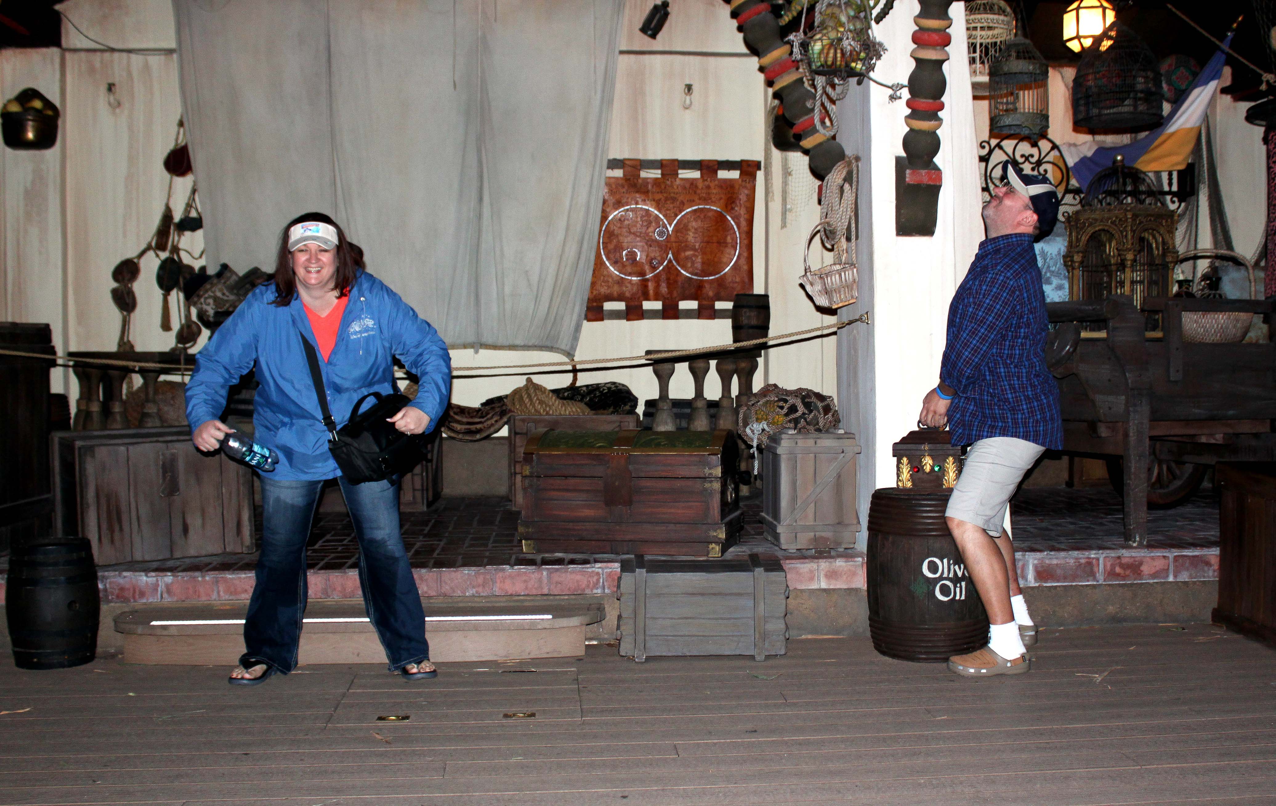 We strolled through the nearby retail locations and into Adventureland, where, of course, we decided to jump in the queue for Pirates of the Caribbean for another test of my non-comparison resolve. We walked through the amazing queue until we found the end of the small line. As we waited, Amy and I were privy to a conversation between the father and son standing right ahead of us.
